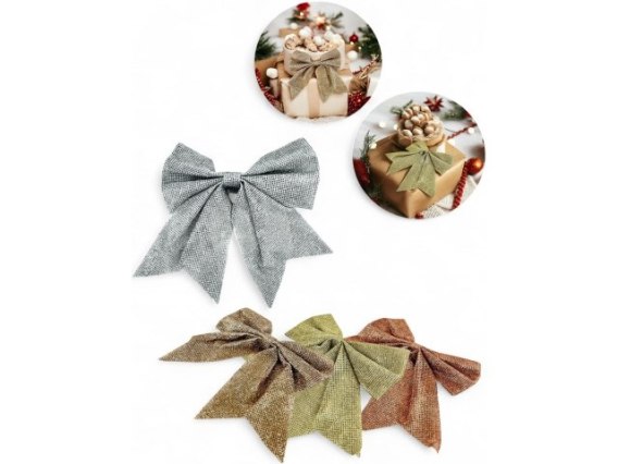 - Błyszczący nadruk z brokatem: każda kokardka jest ozdobiona delikatnym brokatowym nadrukiem, który odbija światło, tworząc spektakularny efekt. To subtelne zdobienie sprawia, że kokardki stają się wyjątkowym akcentem, który przyciąga wzrok i dodaje świątecznego blasku.
